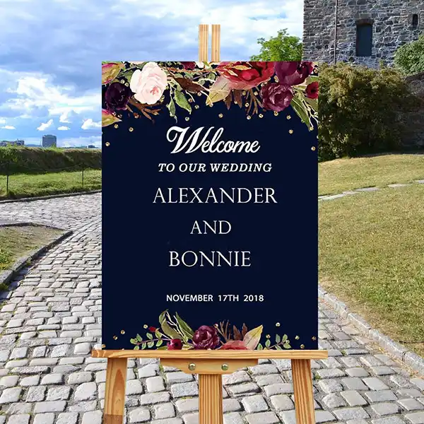 Welcome wedding guests from near and far with welcome to our wedding wood decor. Painting easel wedding prop for names / photos etc. Wood easel wedding sign stand. Position it near the entrance of your venue to let family and friends know they are in the right place. The ones above are what i'm using for my tabke signs. Mulberry and moss, event planner: Our wedding easel stands feature a number of placement options to accommodate any environment. Made of mdf, this standing, easel back piece features a dark wood staining with welcoming words accented with charming floral designs. Blush floral wedding easel sign set 6 piece(s) #13963285 $ 6.19. Ghent's triumph folding tripod easel is the perfect presentation tool. Choose from tabletop or standing. 4.1 out of 5 stars. Then you can use wooden floral adornment for summer weddings.